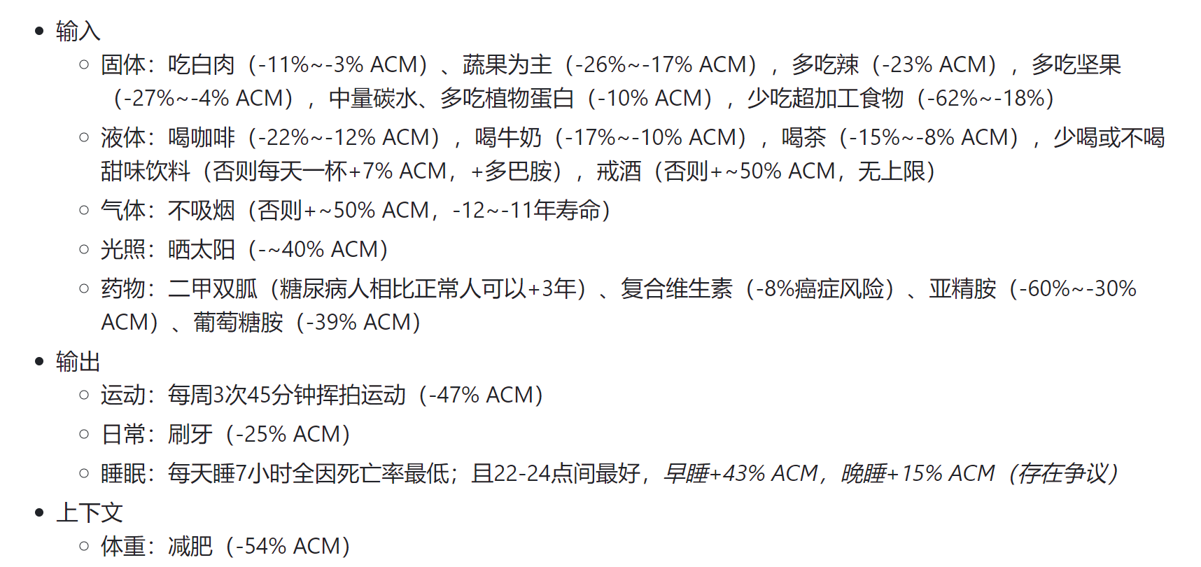 作息>饮食>运动 ACM: All-Cause Mortality / 全因死亡率 GitHub - geekan/HowToLiveLonger: 程序员延寿指南 | A programmer’s guide to live longer
